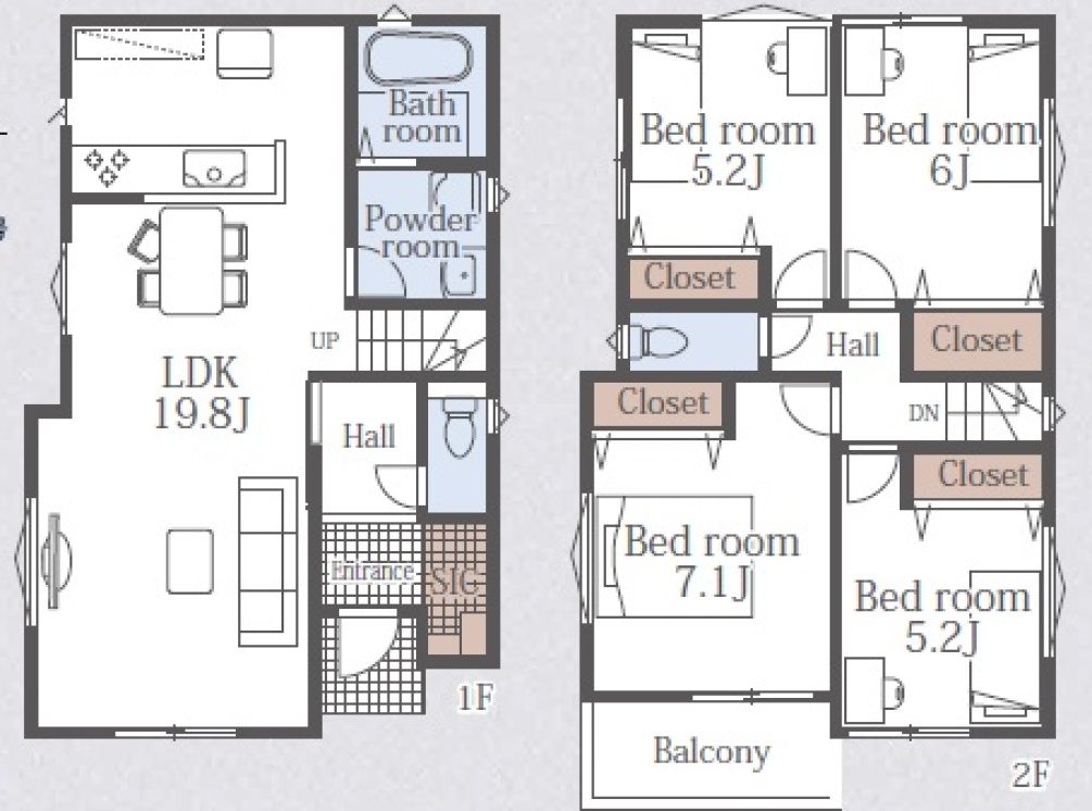 | 間取 | 4LDK ( LDK19.8帖 洋室7.1帖 洋室6帖 洋室5.2帖 洋室5.2帖 ) |