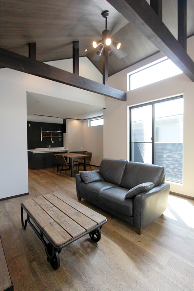 開放感のある勾配天井に空調効率の良いシーリングファンを組み合わせる事で心地良く快適に過ごせます。